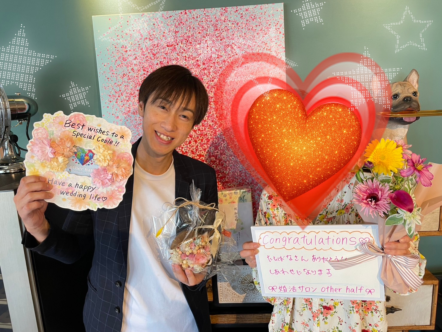 当相談所から、お二人の新しい門出をお祝いしてプレゼントをお贈りしました。