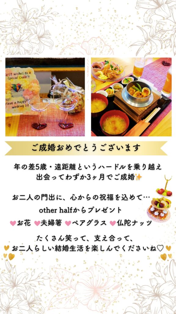 距離を越えてご縁をつかんだお二人の姿は、これから婚活を始める方への希望です。